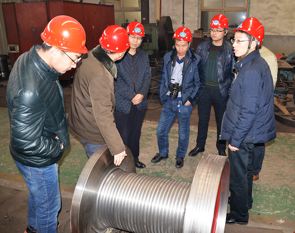 我公司技術(shù)人員向李院長(zhǎng)一行詳細(xì)介紹新式絞車(chē)滾筒特點(diǎn):加工了里巴斯繩槽,開(kāi)檔寬,消除了夾繩、亂繩現(xiàn)象,延長(zhǎng)鋼絲繩的使用壽命。