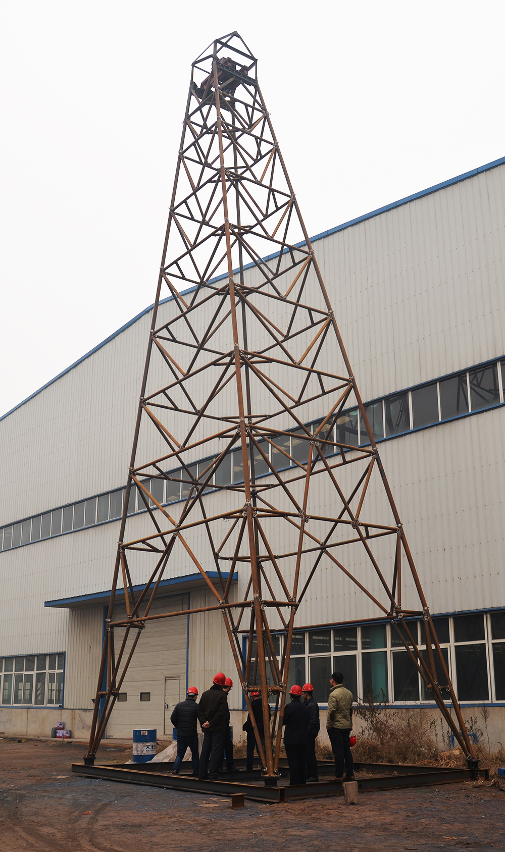核工業(yè)二四三大隊(duì)驗(yàn)收由我公司設(shè)計(jì)制造的直斜兩用鉆塔。在安裝現(xiàn)場(chǎng),我方技術(shù)人員一一解答用戶提出的問(wèn)題。