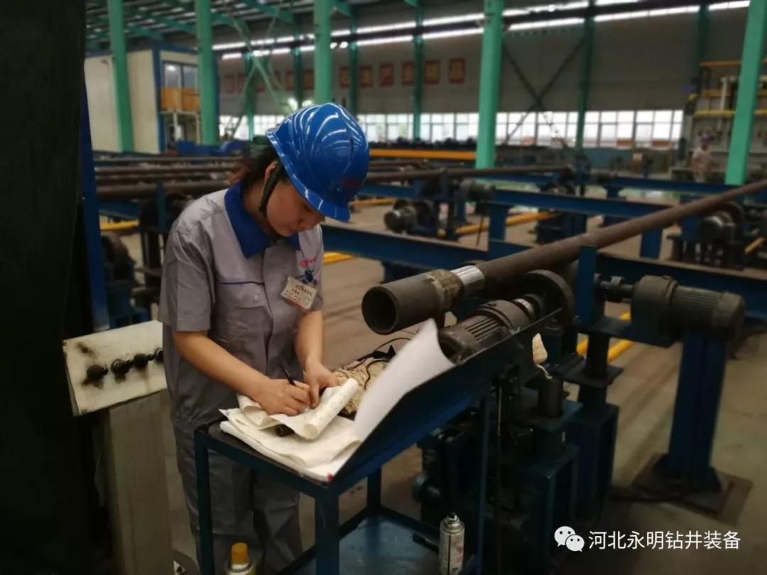 河北永明工人師傅認(rèn)真檢測鉆具